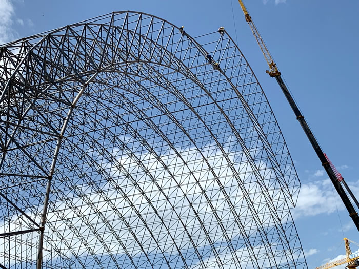 (2)网架加工前应对现场尺寸进行复测,确认无误后方可进行加工、安装;网架制作、运输、安装应遵守《空间网格结构技术规程》JGJ7-2010、《钢网架昆山螺栓球节点》JG/T 10-2009、《钢网架昆山螺栓球节点用高强度螺栓》 GB/T 16939-2016、《昆山钢结构昆山工程昆山施工规范》 GB50755-2012、《昆山钢结构昆山工程昆山施工质量验收标准》 GB50205-2020。